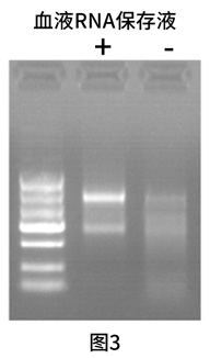 三、允許長期的保存。 在-20℃/-80℃下保存的血液樣品,細(xì)胞在融化后將立即破裂,內(nèi)源性的RNase被釋放,迅速地降解RNA。離體的血液在經(jīng)過血液RNA保存液處理后,直接放入低溫凍存,可以保證血液RNA在提取時(shí)不發(fā)生降解(見圖3)