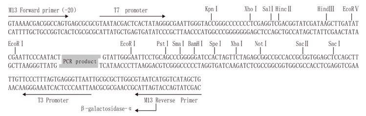 ■ pBLUE-T載體多克隆位點(diǎn)序列