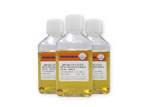 本產(chǎn)品是在 pET 專(zhuān)用生長(zhǎng)培養(yǎng)基的基礎(chǔ)上開(kāi)發(fā)而成的,它利用 E.coli 自身對(duì)培養(yǎng)基中不同碳源的調(diào)控利用機(jī)制,實(shí)現(xiàn)外源蛋白在細(xì)菌達(dá)到飽和生長(zhǎng)期后的半乳糖啟動(dòng)子的自動(dòng)誘導(dǎo)。