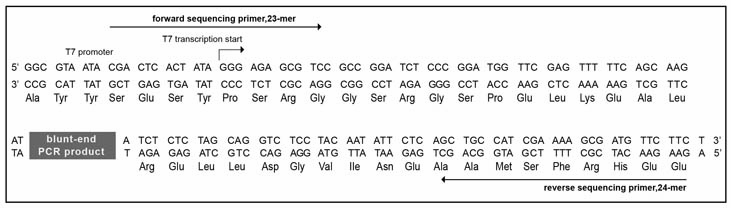 T7 Forward Sequencing Primer,23-mer:5’-CGACTCACTATAGGGAGAGCGTC-3’