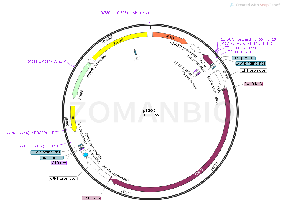 質(zhì)粒序列可參考(具體以測序為準(zhǔn))下載:ZK107 pCRCT酵母編輯質(zhì)粒.txt
