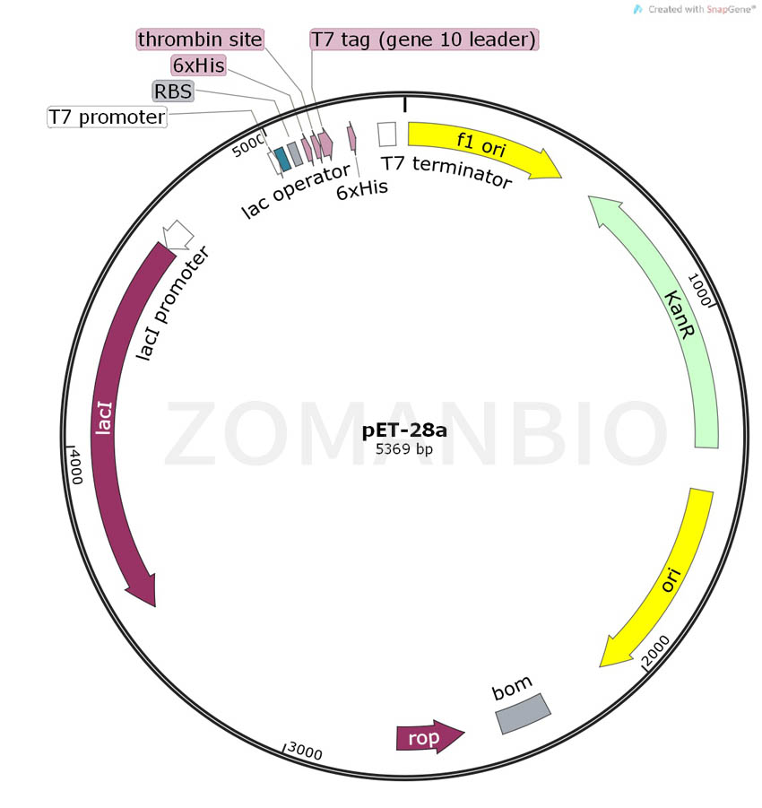 產(chǎn)品名稱:pET-28a質(zhì)粒