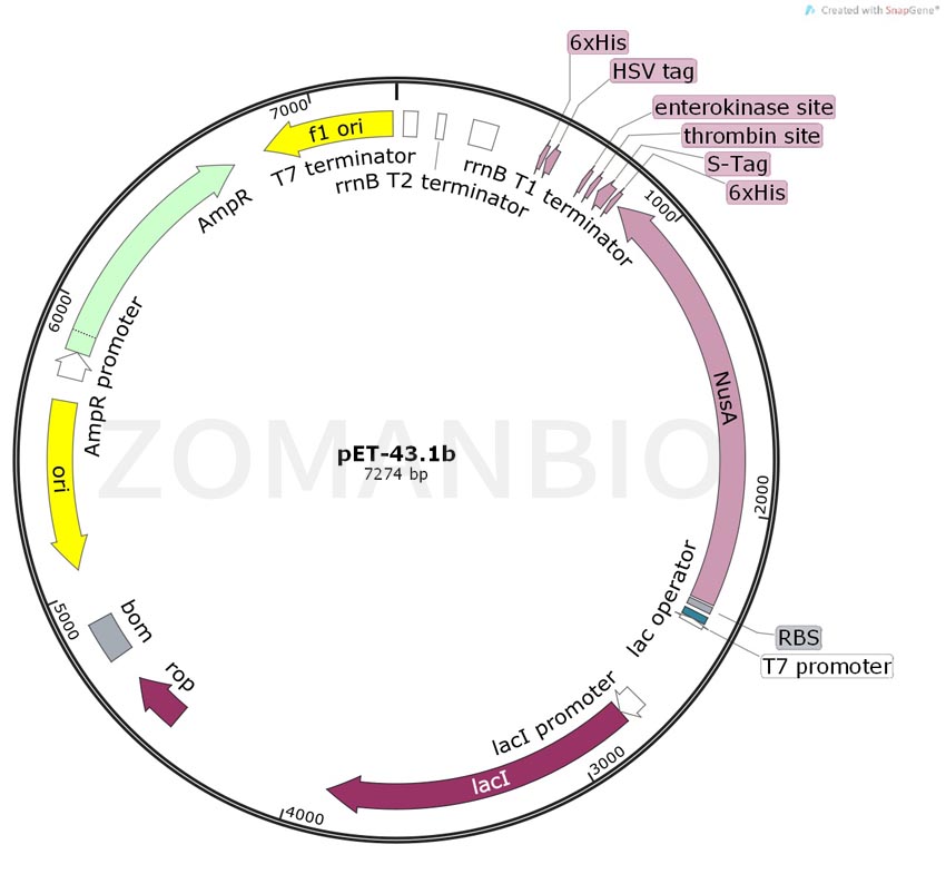 質粒序列請下載:ZK183pET-43.1b大腸表達質粒.txt