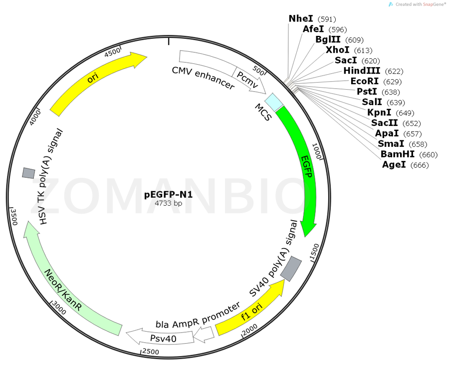 產(chǎn)品名稱:pEGFP-N1質(zhì)粒