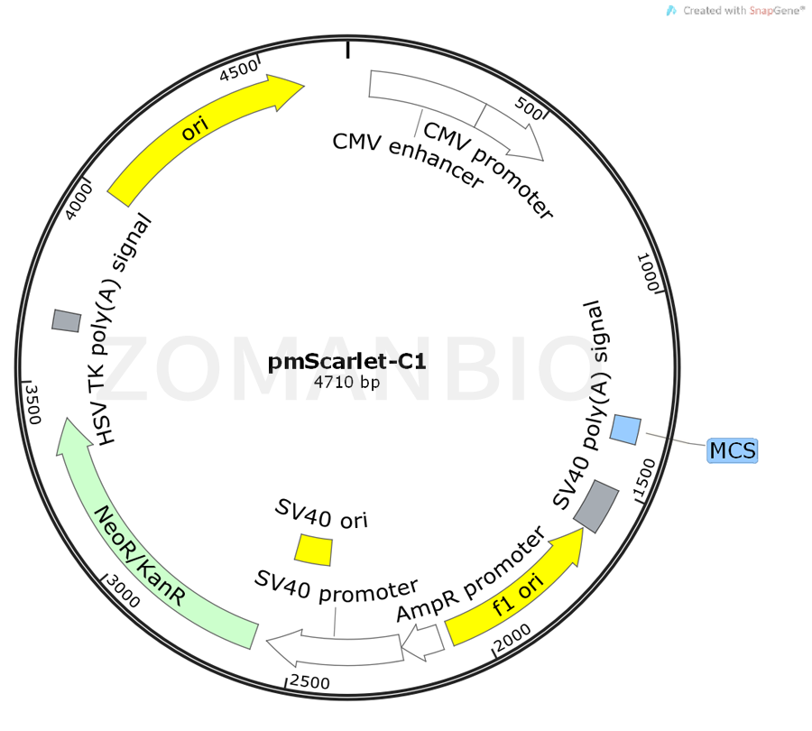 產(chǎn)品名稱:pmScarlet-C1質(zhì)粒
