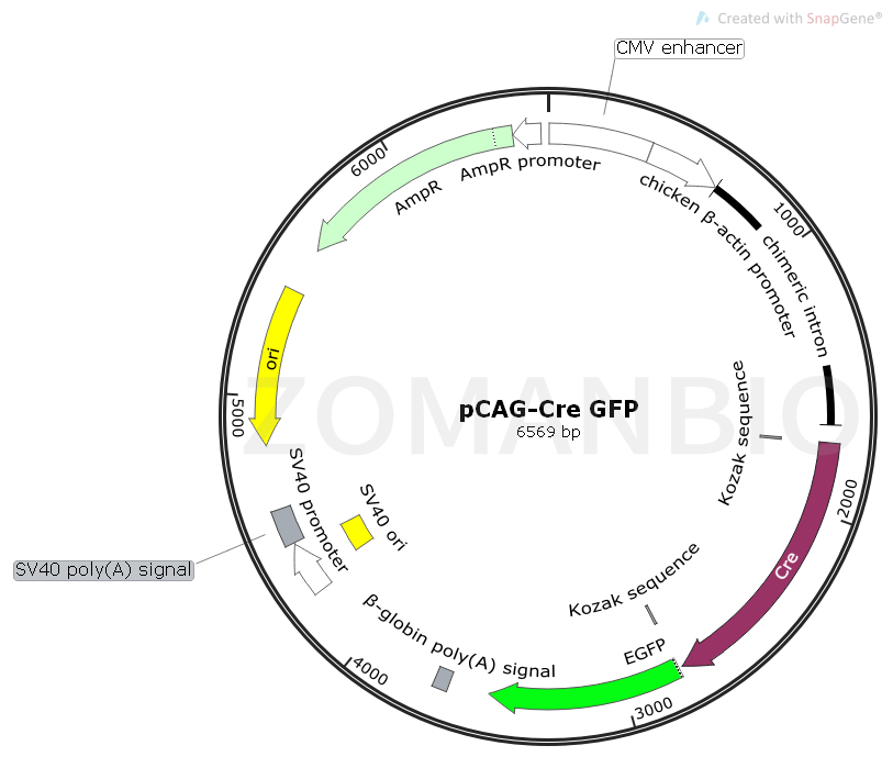 產(chǎn)品名稱:pCAG-Cre:GFP